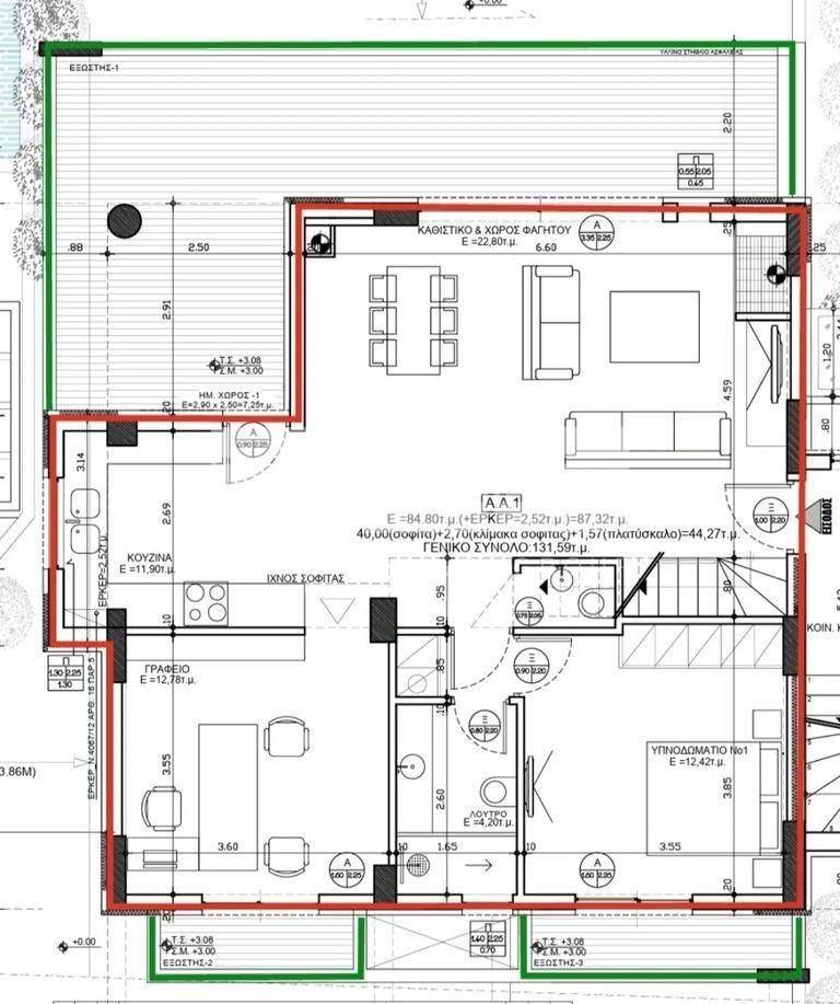 •          Θέση στάθμευσης υπογείου Ρ3 επιφάνειας 22,5 τ.μ.