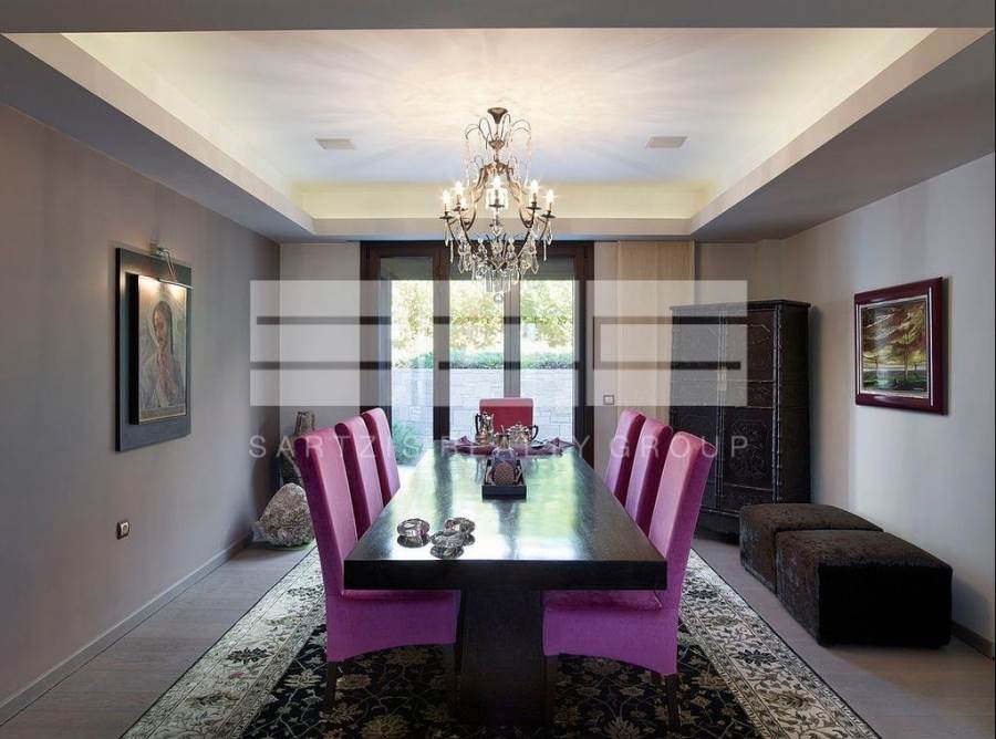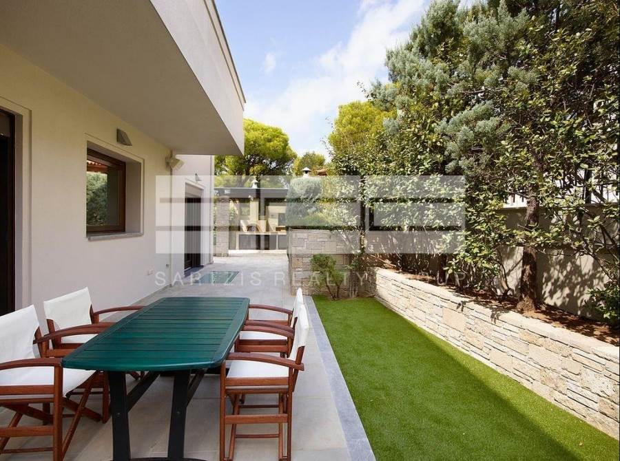 Τραπεζαρία και μεγάλο μπαλκόνι που οδηγεί στο bbq