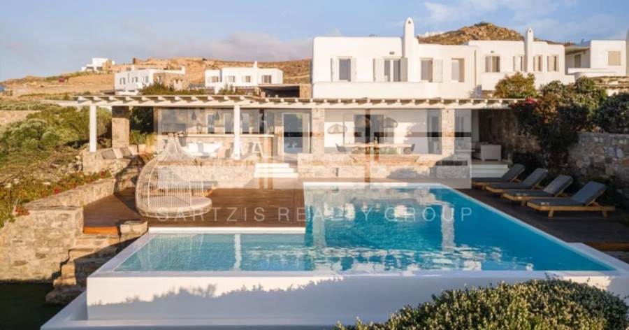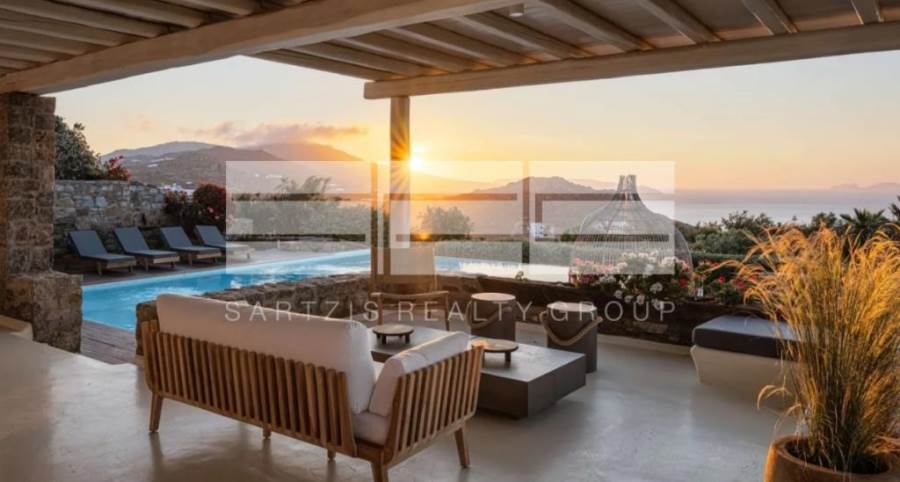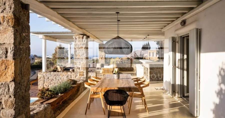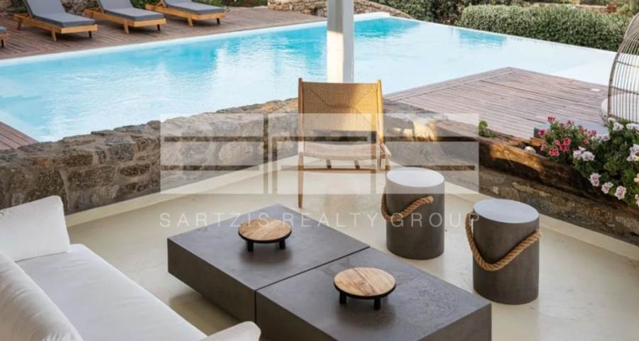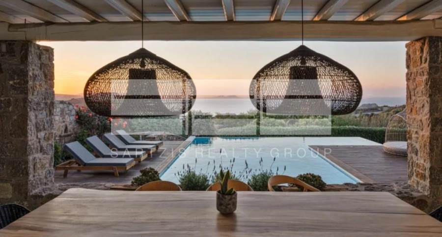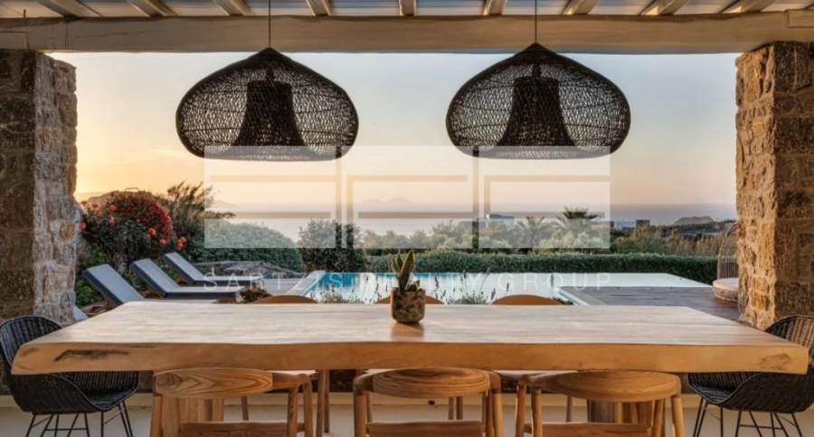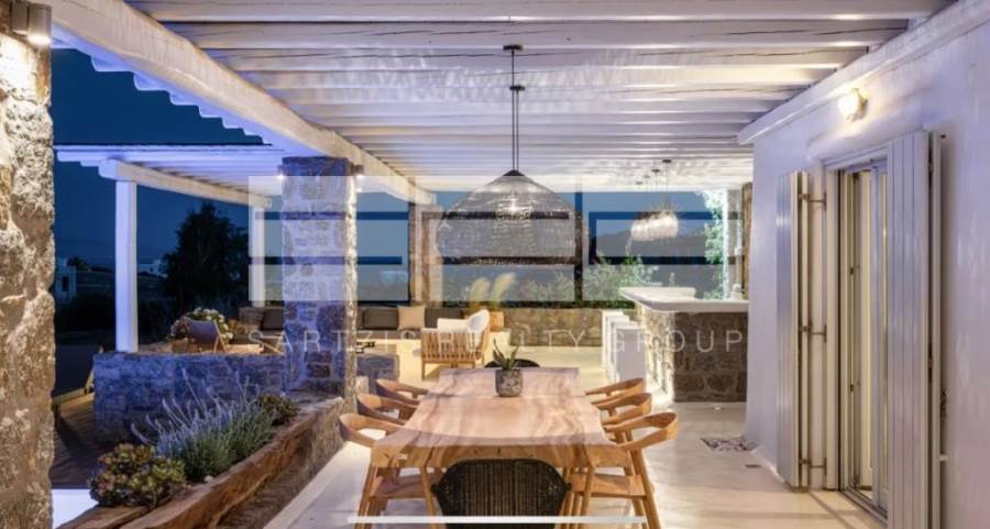 Μύκονος, Άνω Μερά, Βίλα Προς Πώληση, 188 τ.μ., Σε οικόπεδο 3000 τ.μ., Κατάσταση: Καταπληκτική, Όροφος: Ισόγειο, 2 Επίπεδο/α, 5 Υ/Δ (5 Master), 2 Κουζίνα/ες, 6 Μπάνιο/α, 1 WC, Θέρμανση: Αυτόνομη - Ρεύμα, Θέα: Θάλασσα, Έτος κατασκευής: 2016, Ενεργειακό Πιστοποιητικό: Α++, 3 θέση/εις στάθμευσης, Kουφώματα: Αλουμινίου, Χαρακτηριστικά: Πόρτα Ασφαλείας, Συναγερμός, Αποθήκη, Τζάκι, Τζακούζι, Ηλ. Συσκευές, Χρηματοκιβώτιο, Εσωτερική Σκάλα, Διπλά Τζάμια, Τέντες, Βεράντες, Επενδυτικό, Πέτρινο, Παραδοσιακή οικία, Πολυτελές, Αρχοντικό, Διαμπερές, Προσόψεως, Φωτεινό, Κλιματισμός, Ηλιακός, Γκαζόν, Δέντρα, Πισίνα, Κήπος, Νεόδμητο, Βαμμένο, Ανακαινισμένο, Εξοχική Κατοικία, KALAFATIS, MYKONOS 5 Bedrooms • 5 Bathrooms Net Area: 188 m² • 2.8 Acres of Land ., Breathtaking Sea View Private Pool Spacious Garden and Terrace Areas Handcrafted Herringbone Ceiling Air Conditioning in Every Room Mini Bar, and Barbecue Parking Garage AUTHENTIC CYCLADIC VILLA With a Sea View and Private Pool This five-bedroom villa combines Cycladic charm with modern lu, xury, offering exceptional indoor and outdoor spaces. Located in northeastern Mykonos, it’s just minutes from crystal-clear beaches and 15 minutes, from Chora. • Interiors: Spacious, sunlit living areas, custom woodwork, and herringbone ceilings. Includes a, master suite with private bath, a fully equipped kitchen, and airy bedrooms with stunning views. • Outdoor: Pool with sun loungers, shaded lounge,, alfresco dining area, barbecue, and a covered poolside bar perfect for entertaining. Accomodates up to 10 guests, this villa is perfect for families, or groups of friends and it offers luxurious comfort, breathtaking views, and proximity to Mykonos’ most iconic hotspots!, Τιμή: 1.700.000€. Sartzis Realty Group, Τηλ. Επικοινωνίας: 2102208679, email: