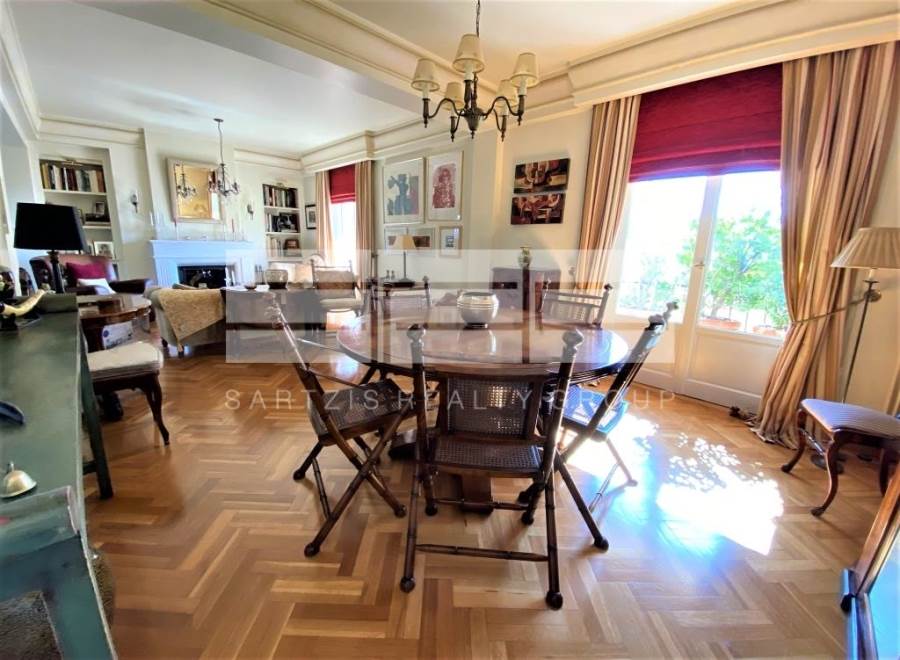 Athens, Rigillis, Maisonette For Sale, 155 sq.m., Property Status: Amazing, Floor: 5th, 2 Level(s), 3 Bedrooms (2 Master), 1 Kitchen(s), 3 Bathroom(s), 1 WC, Heating: Central - Natural Gas, Building Year: 1960, Energy Certificate: F, Floor type: Wooden floors, Type of door frames: Aluminum, Features: Elevator, Security alarm, CCTV, Storage room, Fireplace, Electric Appliances, Internal Staircase, Double Glazed Windows, Balcony Cover, Balconies, Neoclassical, Luxury, AirConditioning, Solar water system, Price: 2.500.000€. Sartzis Realty Group, Tel: 2102208679, email: